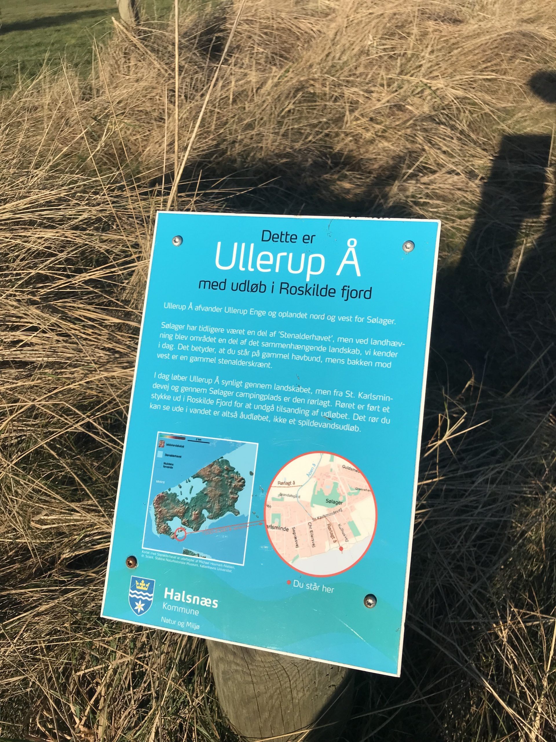 Plate Ullerup Å and map of Halsnæs Peninsula in last Ice Age period around 10.000 b. Chr., when Halsnæs was an island.