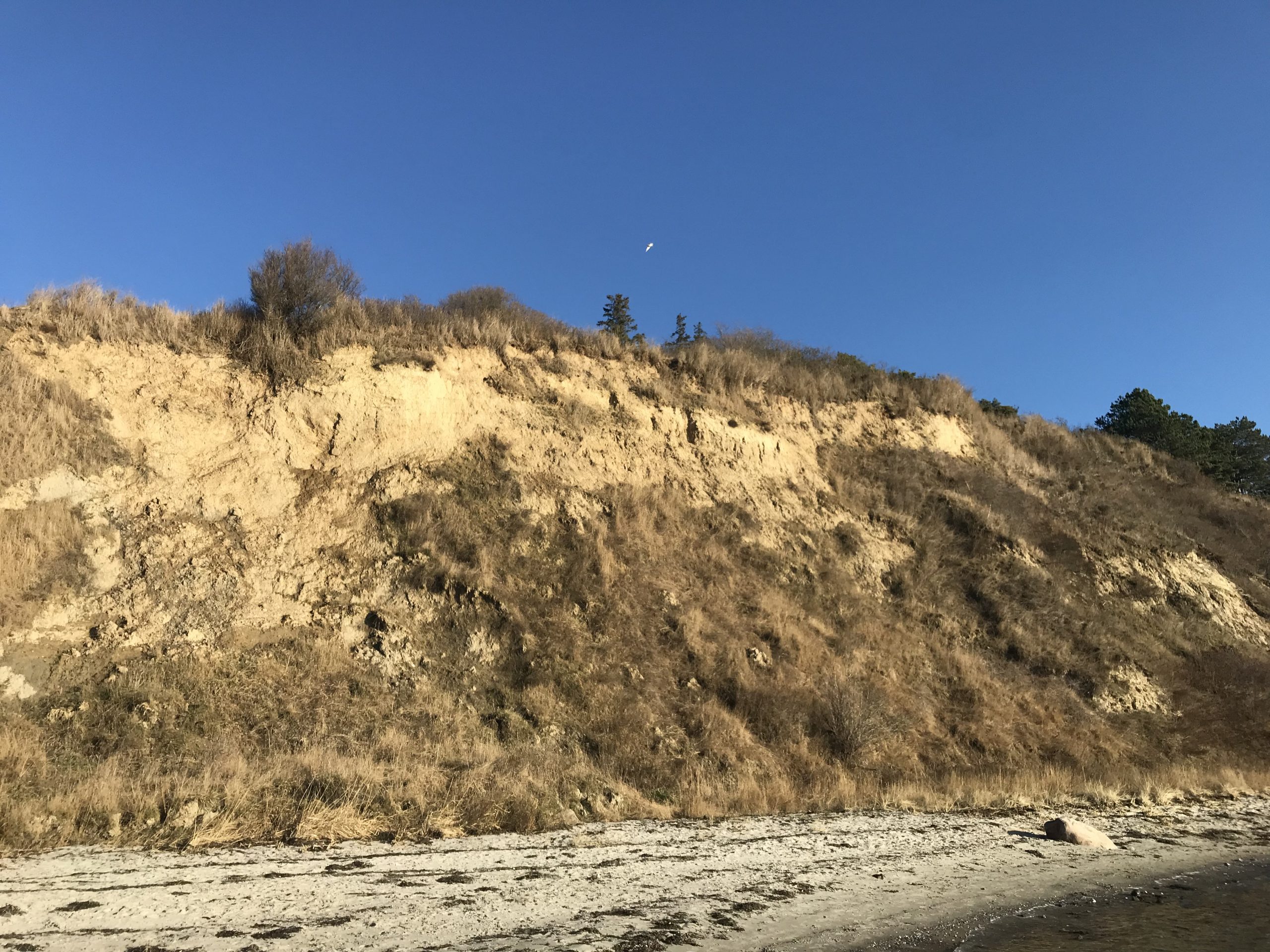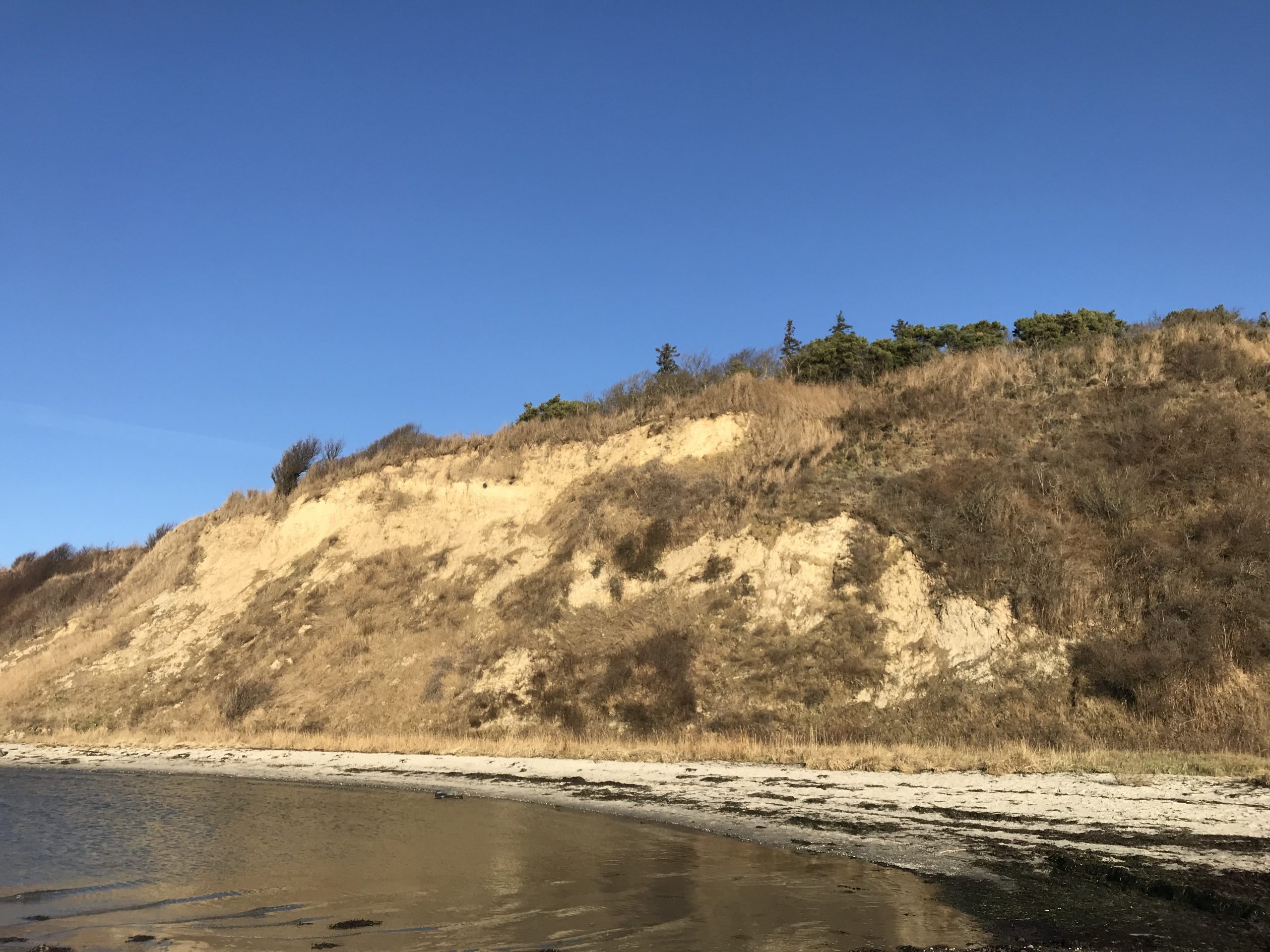 View in direction east of coast of Roskilde Fjord at Store Karlsminde Cliffs: